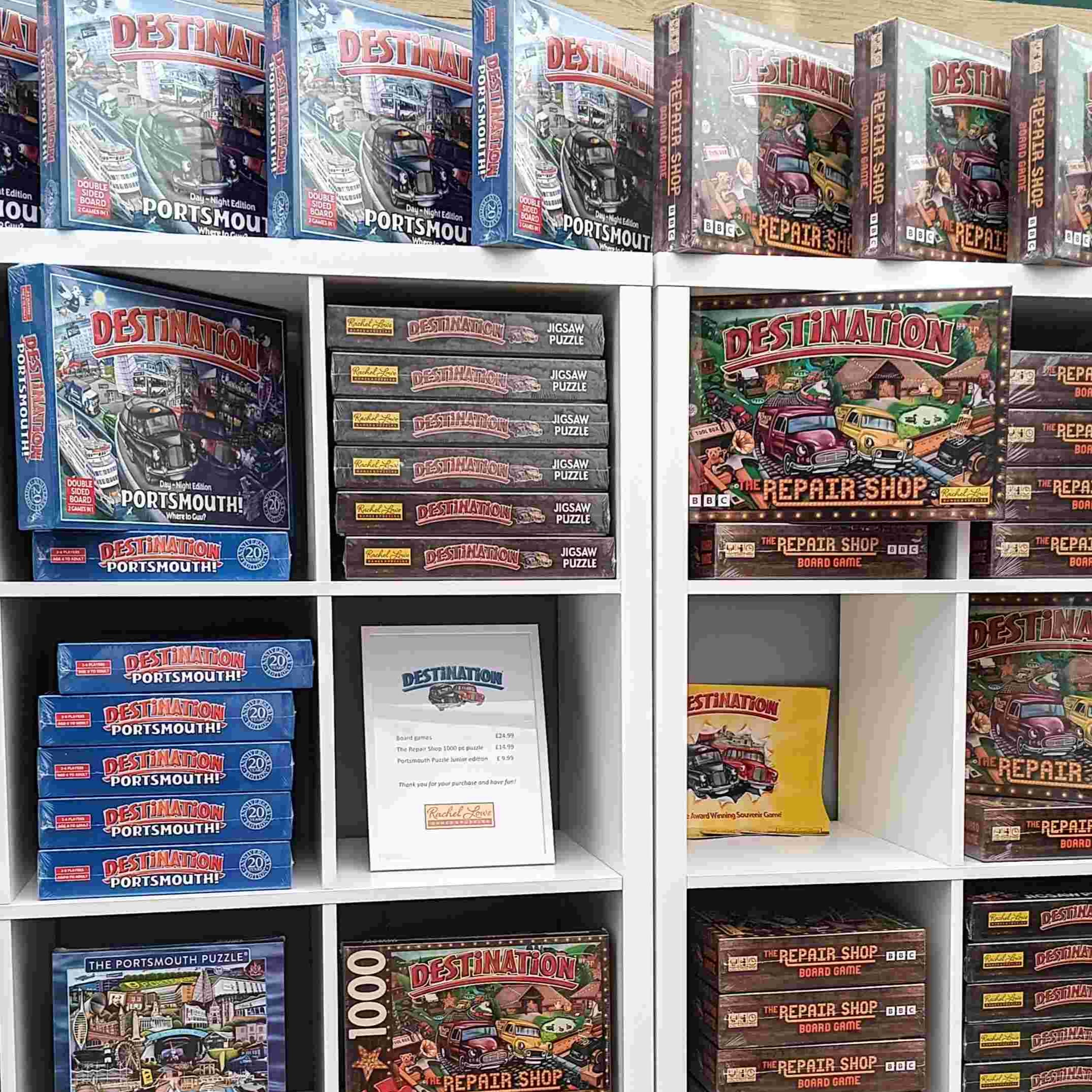Portsmouth-born Rachel Lowe is an award-winning game designer known for her original puzzles and board games celebrating popular locations, films, and TV shows. Her famous Destination range includes The Repair Shop, Destination World, and the special 20th Anniversary Destination Portsmouth edition. Other favourites include Call The Midwife, Downton Abbey, and Jumanji. Fun for all ages, her games make brilliant gifts that bring local landmarks and much-loved stories to life.